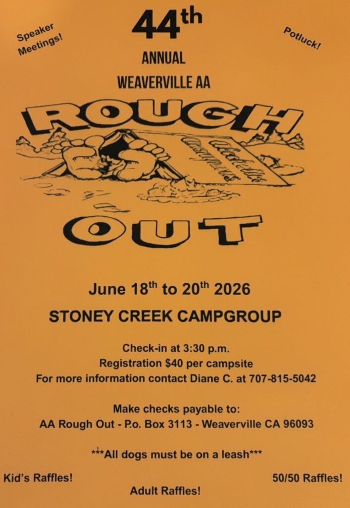 44th Annual Weaverville AA Rough Out ~ Thursday, June 18th – Saturday, June 20th